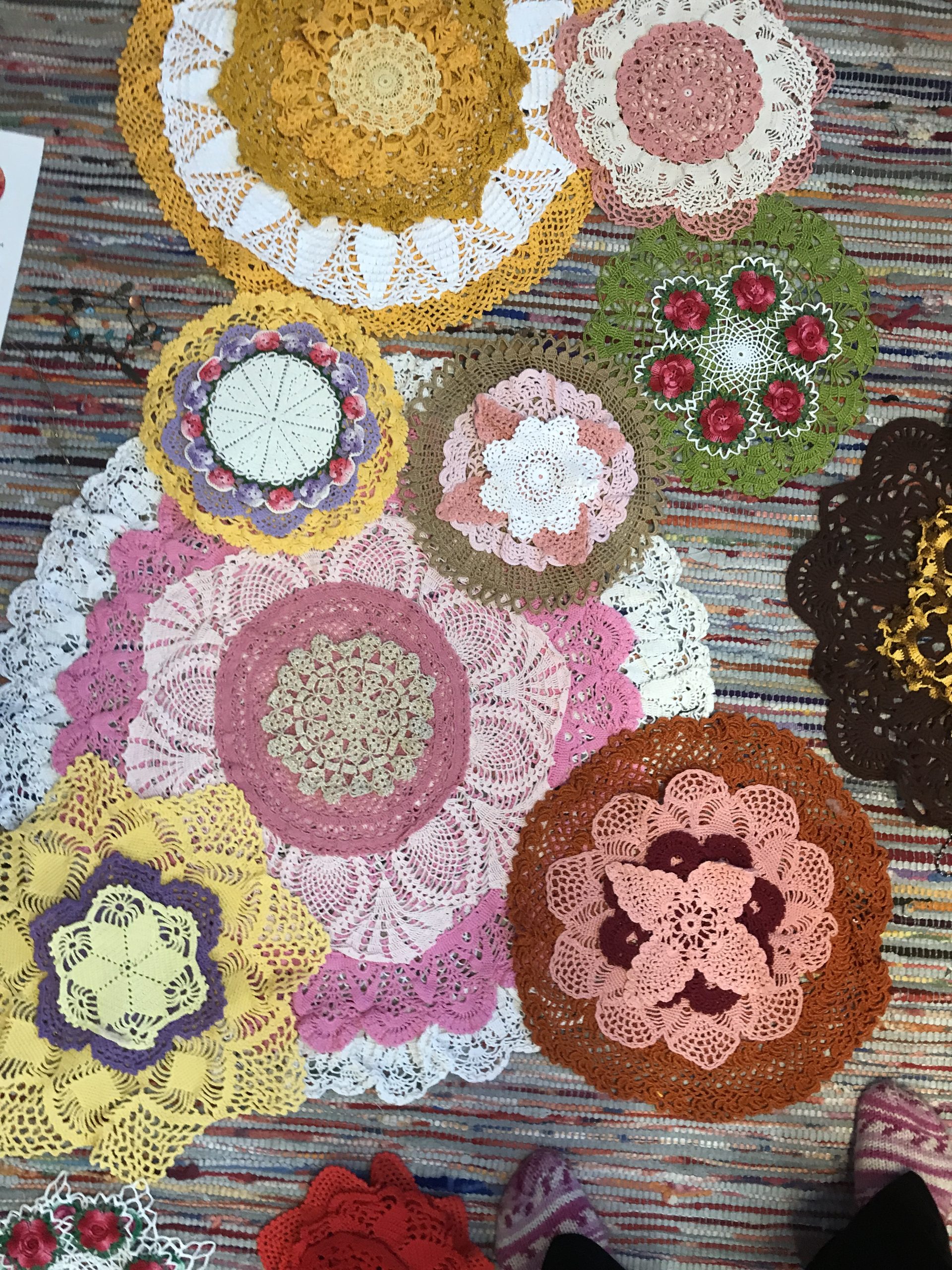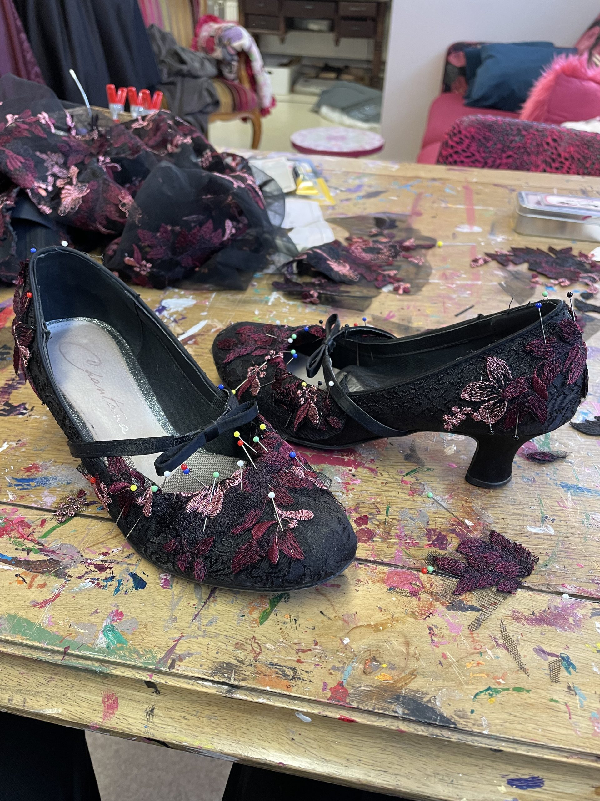 Vanhojen tansseihin tyyliin sopivat korkkarit. Pitsit paikoilleen käsinommellen.