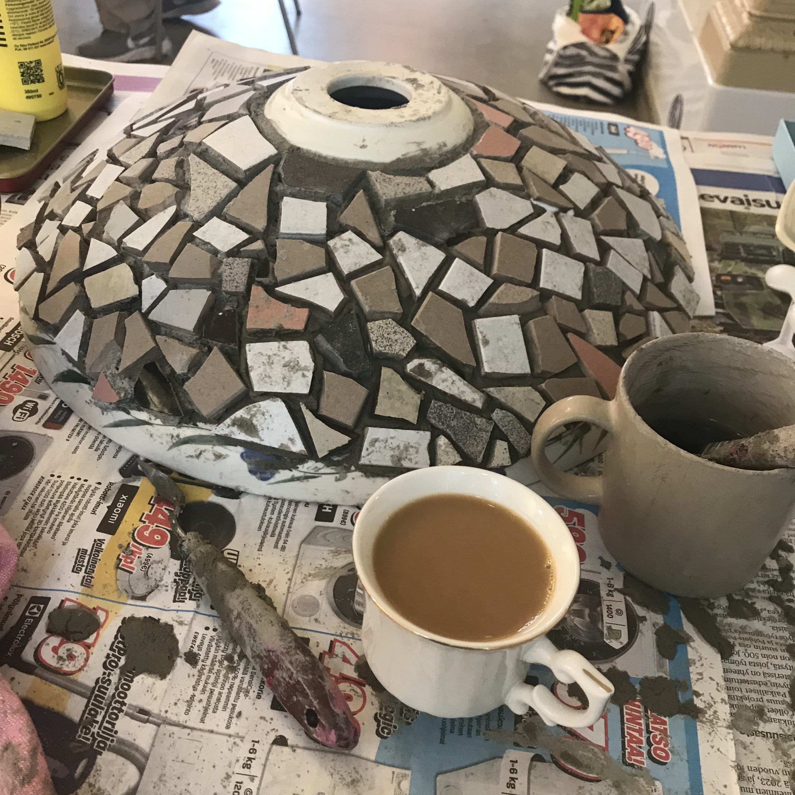 Mosaiikia vanhaan porsliiniseen lampunkupuun