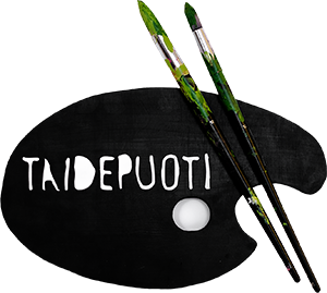 Tornion Kuvataideseuran Taidepuodille vanerikyltti. seuran logo suunnitelun pohjana, Toteutus vanerille. Syvättynä kuvana myös graafiseksi elementiksi. Brändin väerissä.
