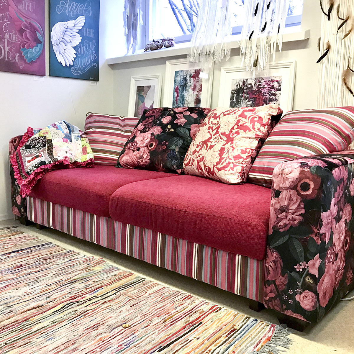 Hävitykseen menossa ollut levitettävä sohva löysi paikkansa Ateljeella.