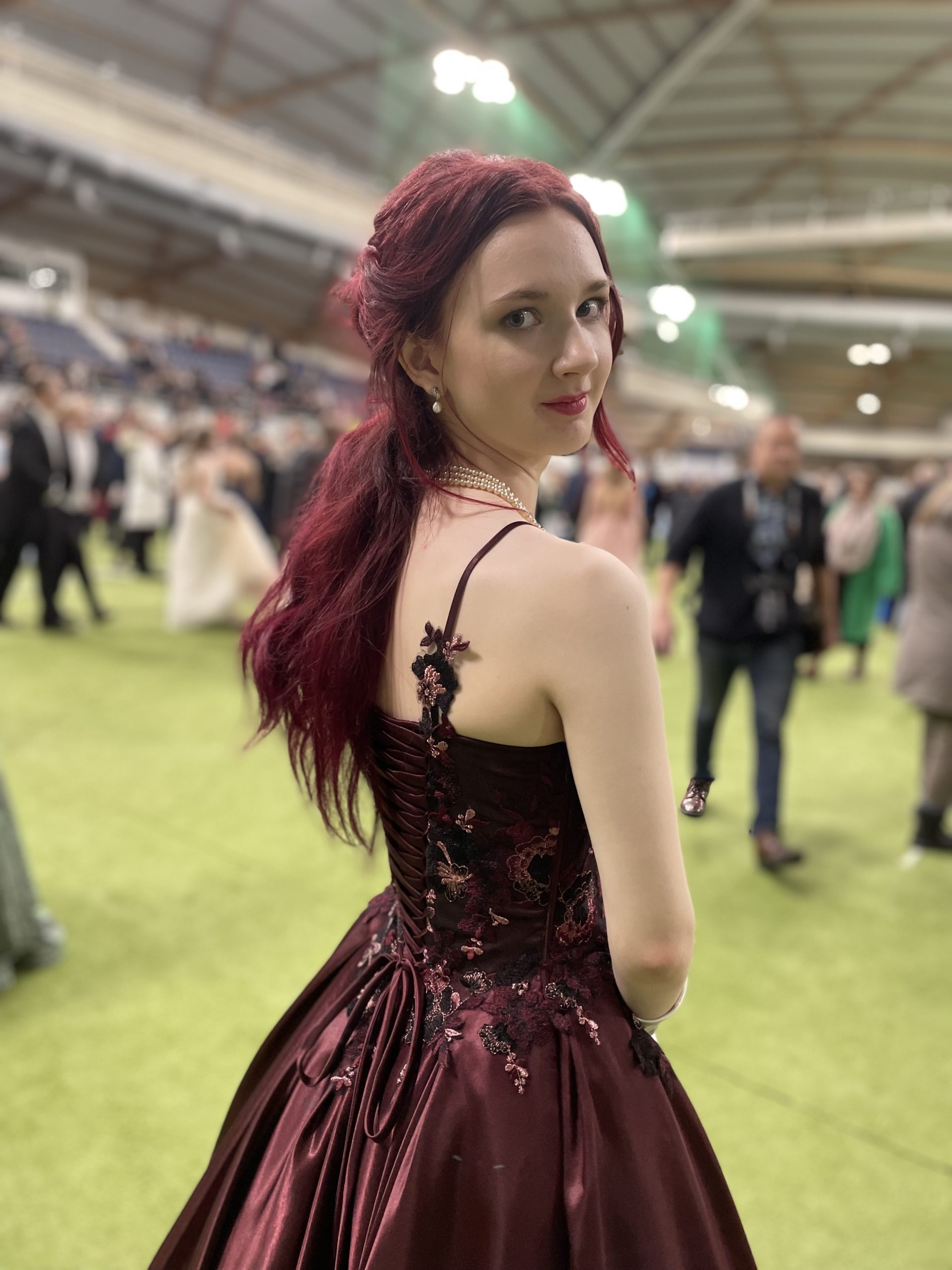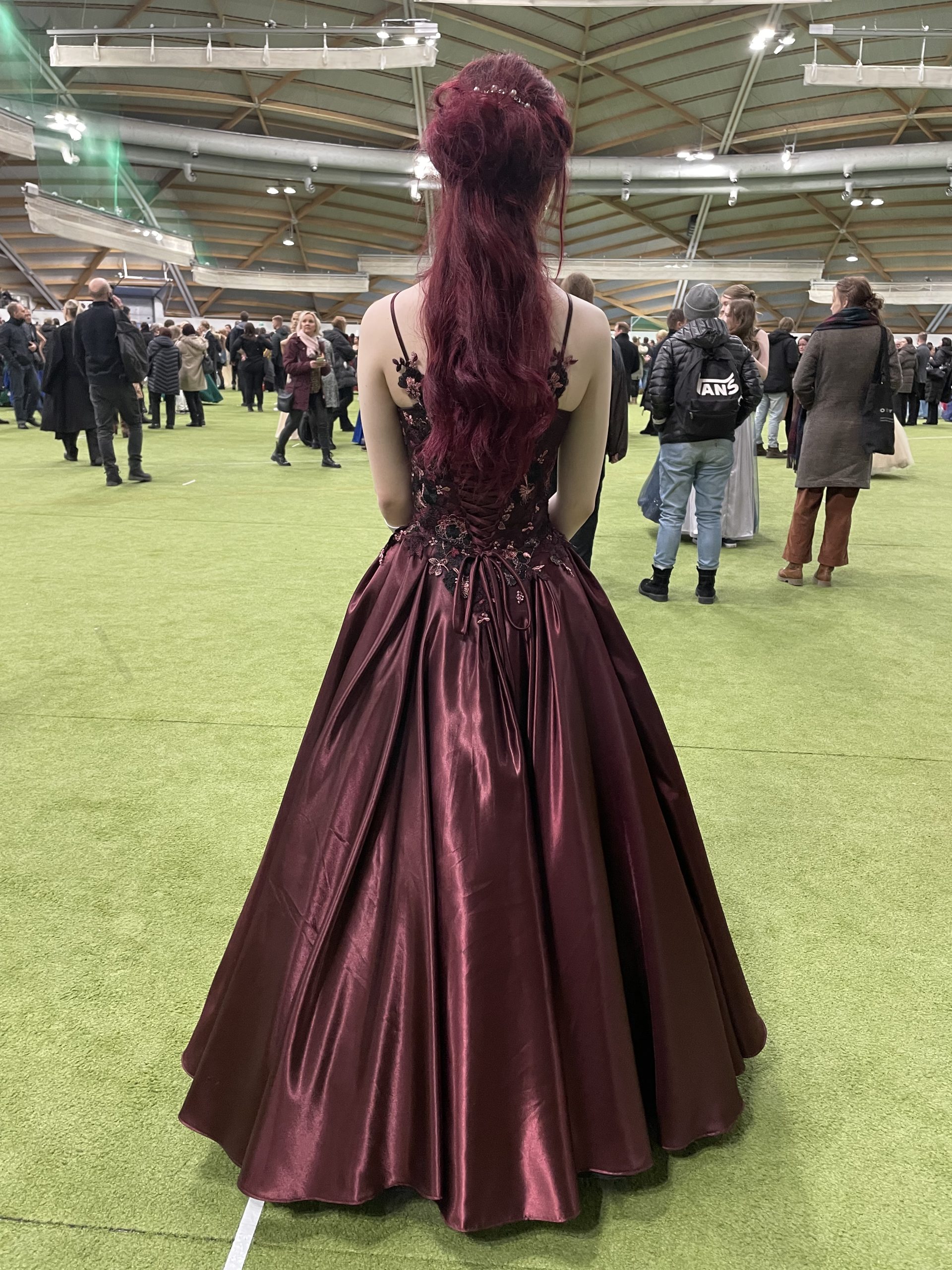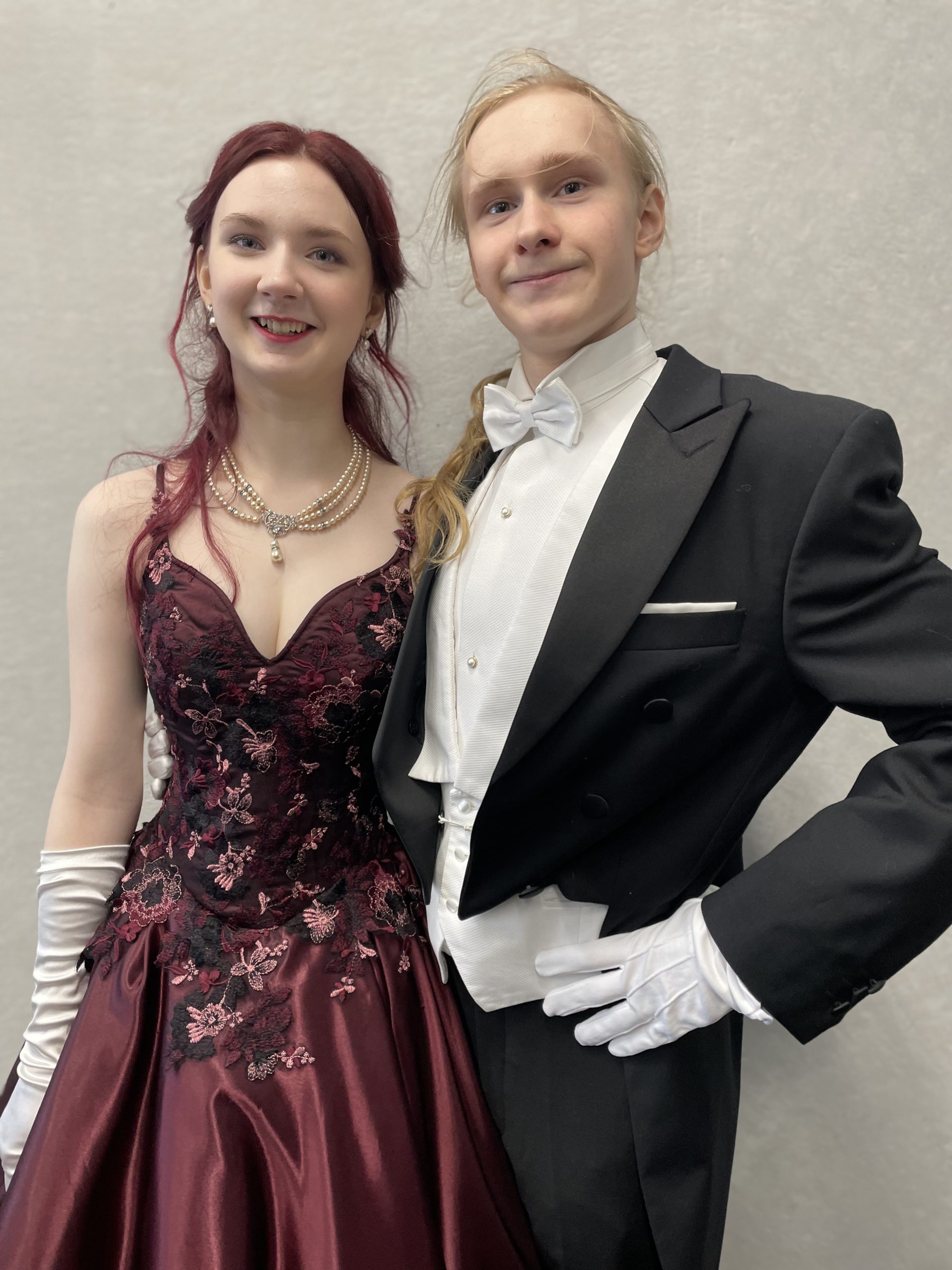 Vanhojen tansseihin tyyliin sopivat korkkarit. Pitsit paikoilleen käsinommellen.