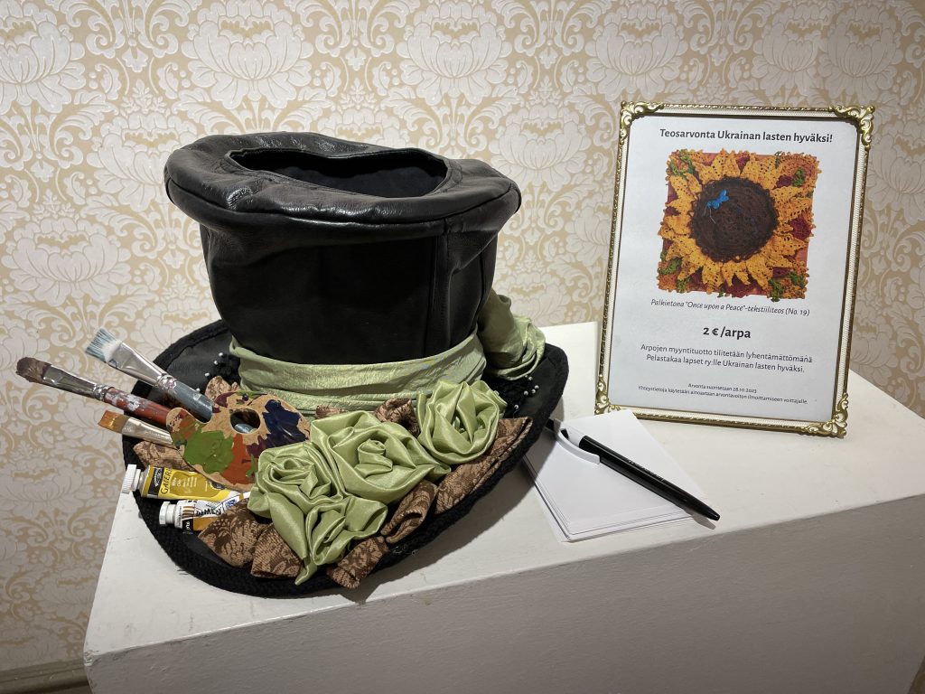 Tornion Kuvataideseuran käyttöön tapahtumissa. Aitoa nahkaa kirppistakista. Taitelijan tuhoamat, kuivumaan jätetyt pensselit somisteena. Käytössä kestävä ja hiilijalanjälki nolla.