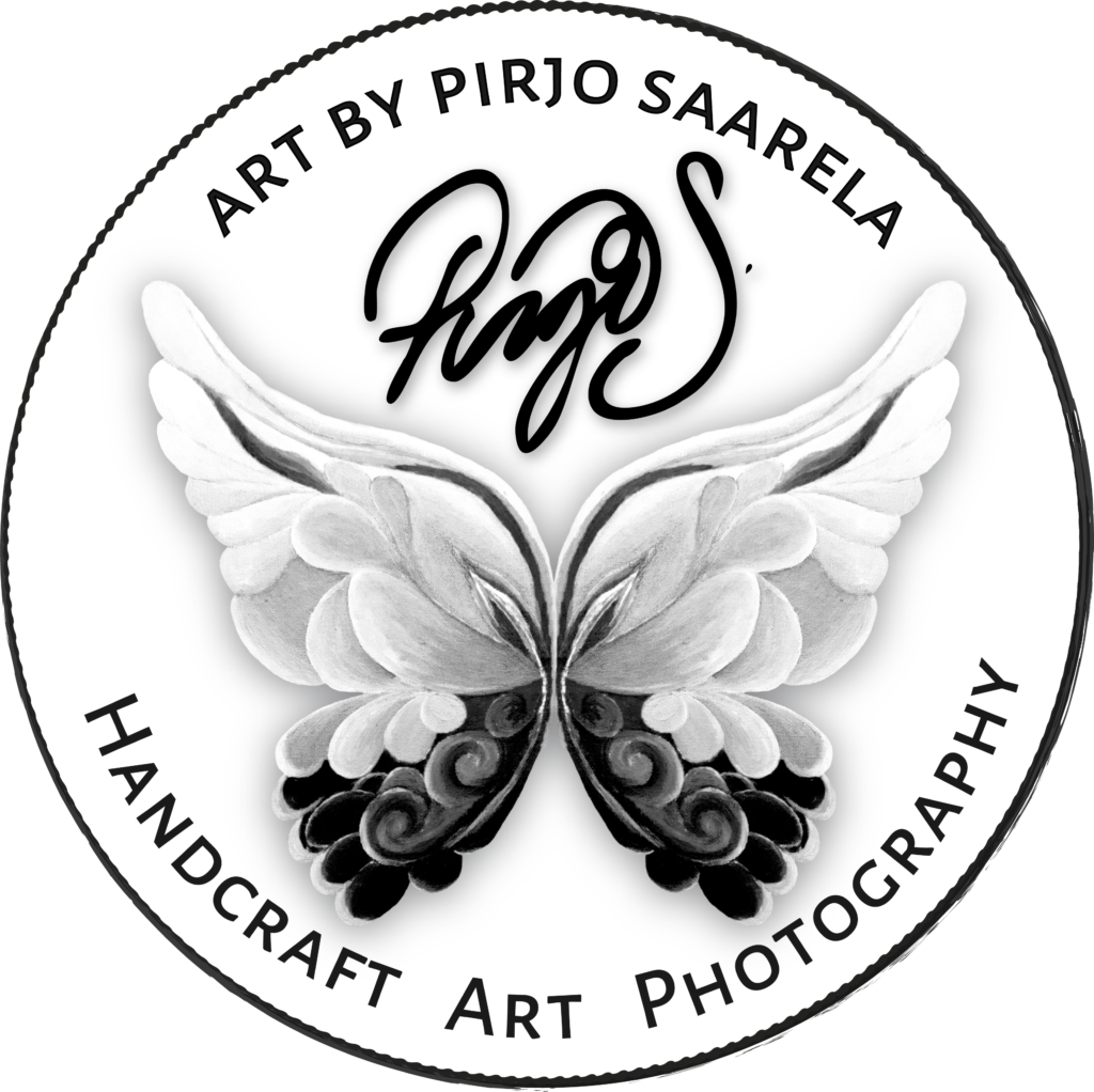 Jokunen päivä syväystä ja kuvankäsittelyä Photoshopilla. ”Angels in My Heart” ja ”Butterflies in the Sky” -taidenäyttelyjen nimikkoteokset jatkavat matkaansa taidejulisteina, postikortteina ja logografiikkana Art by Pirjo S.